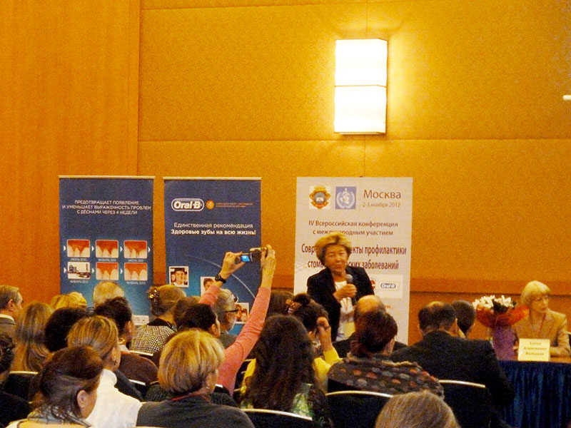 2 ноября 2012 г. в торжественной обстановке, в московском Конгресс-центре «Holiday Inn Сокольники» открылась двухдневная IV Всероссийская конференция с международным участием «Современные аспекты профилактики стоматологических заболеваний». В этом году событие это стало особенно актуальным, можно сказать резонансным, т.к. все медицинское сообщество приняло решение, что вектором развития сегодняшней медицины должна стать ПРОФИЛАКТИКА. Формат конференций «Современные аспекты профилактики стоматологических заболеваний» сохраняется привычным. С позиции доказательной медицины и через призму междисциплинарных взаимосвязей ее участники в течение первого дня обсуждают актуальные насущные проблемы и перспективы на будущее. Много лет это мероприятие возглавляет заведующая КПСЗ, директор СЦ ВОЗ по инновациям в области подготовки стоматологического персонала, эксперт ВОЗ по стоматологии, профессор Э.М. Кузьмина. Постоянными участниками конференции являются руководители МГМСУ, НИМСИ МГМСУ, заведующие и профессора смежных стоматологических (и не только) кафедр МГМСУ. Открываел конференцию главный Стоматолог РФ, ректор МГМСУ, проф. О.О. Янушевич. С приветствиями к собравшимся гостям обращаются проректор по научной работе и международной деятельности Е.А. Вольская, директор НИМСИ, проф. В.Н. Царев; декан стоматологического факультета проф. А.В. Митронин, почетные зарубежные гости д-р Anton EUBA – Президент Ассоциации содействия научной стоматологии в Баварии.