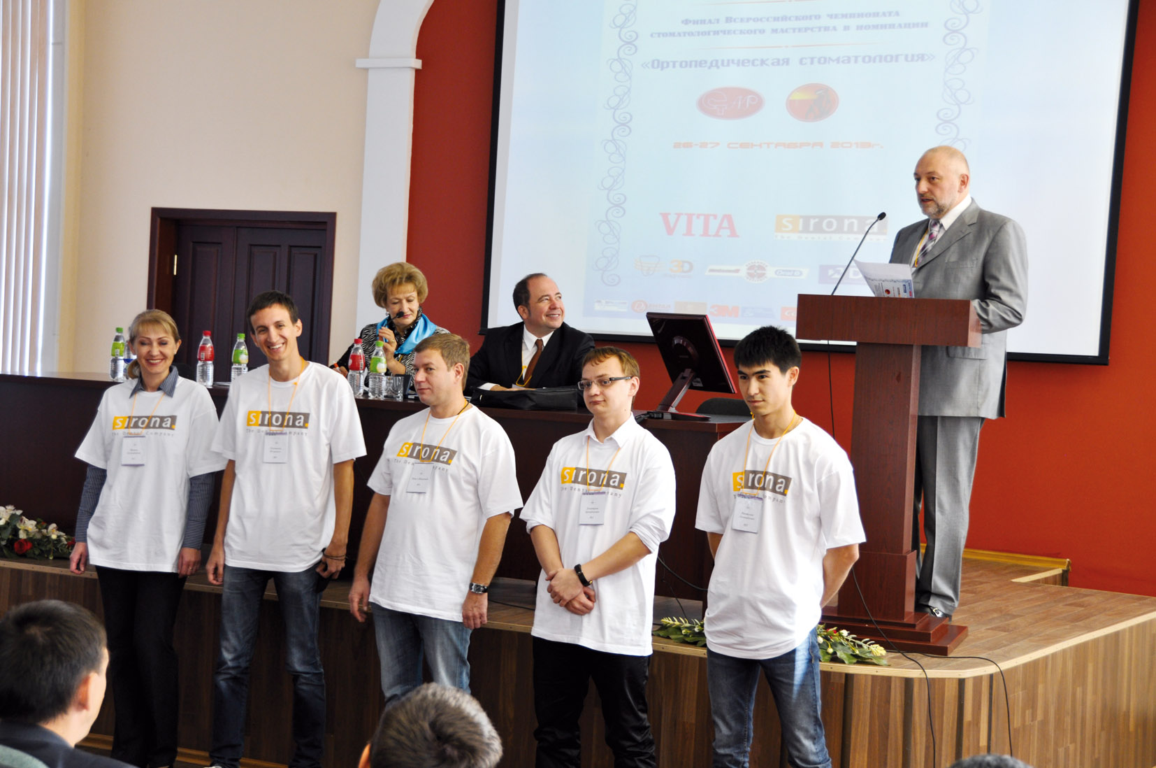 Чемпионат стоматологического мастерства 2013Итоги конкурса "Лучшая работа по ортопедической стоматологии"Салют Чемпионам !!! 26–27 сентября 2013 г. во Владивостоке на базе Тихоокеанского государственного медицинского университета состоялась ежегодная научно-практическая конференция ассоциации стоматологов приморского края «Актуальные вопросы стоматологии», как календарного мероприятия СтАР. В рамках данного симпозиума прошел финал Всероссийского чемпионата стоматологического мастерства в номинации «Ортопедическая стоматология» среди врачей. Торжественное открытие научно-практической конференции, посвященной актуальным проблемам стоматологии, состоялось в большом зале главного корпуса университета. С приветственным словом выступили: Садовский В.В. – президент СтАР, профессор Шуматов В.Б. – ректор ГБОУ ВПО ТГМУ, Дигодьева О.А. – президент Ассоциации стоматологов Приморского края, главный врач стоматологической поликлиники ГБОУ ВПО ТГМУ, Первов Ю.Ю. – декан стоматологического факультета, заведующий кафедрой ортопедической стоматологии ГБОУ ВПО ТГМУ и профессор Лебеденко И.Ю. – председатель жюри чемпионата стоматологического мастерства в номинации «Ортопедическая стоматология». Симпозиум вызвал большой интерес у слушателей. Ведущие стоматологи России выступили с докладами по многим злободневным темам, поделились своими разработками новейших методов лечения и реабилитации пациентов. Профессор Сергей Дарчоевич Арутюнов (МГМСУ) представил доклад «Современные челюстно-лицевые протезы». Профессор Игорь Юльевич Лебеденко (МГМСУ) рассказал о влиянии металлокерамических конструкций на здоровье пациентов. Владимир Викторович Садовский, директор НИИАМС, президент Стоматологической Ассоциации России (СтАР) познакомил аудиторию с современными подходами к лечению воспалительных заболеваний мягких тканей полости рта и губ. Профессор Сергей Егорович Жолудев (УрГМА) рассказал коллегам о причинах непереносимости съемных конструкций зубных протезов и поделился способами их решения. Профессор Людмила Николаевна Тупикова (АлтГМУ) озвучила нюансы ортопедической реабилитации пациентов с ограниченной мобильностью. Профессор Алексей Борисович Перегудов (МГМСУ) разъяснил, чем должна отличаться современная функциональная и эстетическая ортопедическая стоматология. Профессор Ренат Ахмедуллович Салеев (КазГМУ) выступил с докладом «Акционирование стоматологических медицинских организаций: мифы и реальность». Первов Юрий Юрьевич – к.м.н., заведующий кафедрой ортопедической стоматологии, декан стоматологического факультета Тихоокеанского ГМУ акцентировал внимание на значение иммунного гомеостаза слизистой оболочки полости рта при выборе ортопедического лечения. Профессор Павел Семенович Юдин (г. Москва) раскрыл секреты успеха в докладе «Управляемая дентальная имплантация: от компьютерной графики до хирургического шаблона и временной реставрации». Большой интерес слушатели проявили также к заявленным докладам Русаковой Е.Ю. – к.м.н., главный детский стоматолог ДВФО, Толмачева В.Е., к.м.н., зав. кафедрой хирургической стоматологии и ЧЛХ ТГМУ, Ларионовой Д.Б. – к.м.н., зав. кафедрой терапевтической стоматологии ТГМУ, врача-стоматолога из Москвы Л.Г. Аюповой, С.В. Игнатьева, главврача КГБУЗ «Дальнереченская стом
