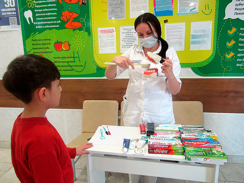 Детскими врачами-стоматологами, проводящими плановую санацию в школьных стоматологических кабинетах, организована информационно-просветительская работа в рамках данного мероприятия: уроки здоровья, осмотры полости рта, театральные представления, выставки рисунков, демонстрация видеоматериалов. В детском отделении поликлиники организовано театрализованное представление.