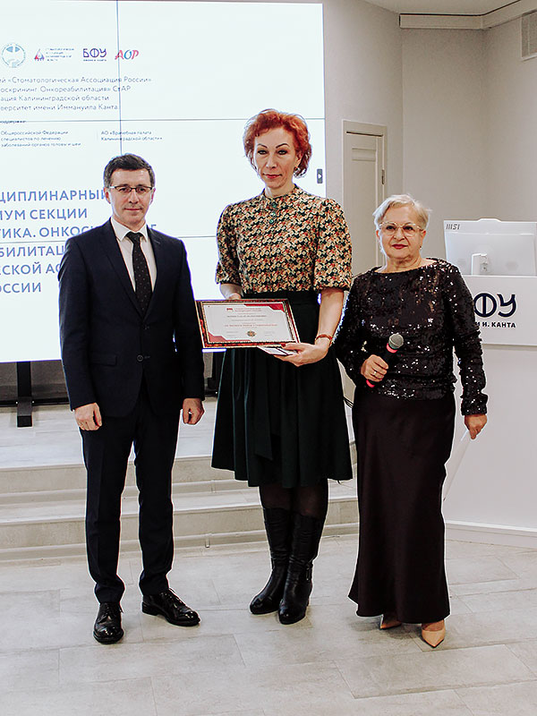 XII Междисциплинарный симпозиум СтАР29 ноября 2025 года, КалининградПОСТ-РЕЛИЗ29 ноября 2025 года на базе НОЦ «Стоматология» БФУ им. И. Канта состоялся XII Междисциплинарный симпозиум Стоматологической ассоциации России (СтАР). Тема мероприятия: онкопрофилактика и ранняя диагностика заболеваний полости рта. С приветственными обращениями к участникам выступили заместитель Министра здравоохранения Российской Федерации Т. В. Семёнова, главный внештатный стоматолог Минздрава России О.О. Янушевич и Министр здравоохранения Калининградской области С.В. Дмитриев.